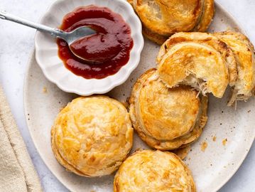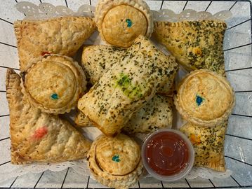 Flaky puff pastry with a filling of your choice (Beef/Chicken/Veggie).