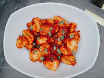 The classic red chicken, tender and perfectly spiced.